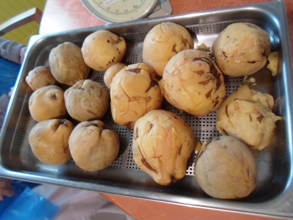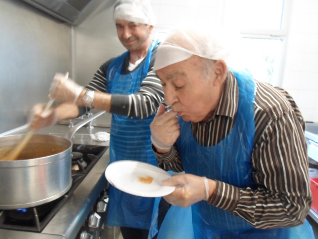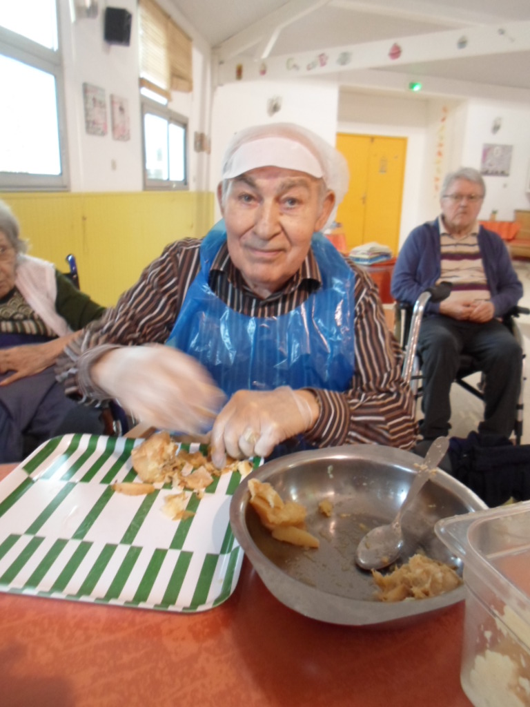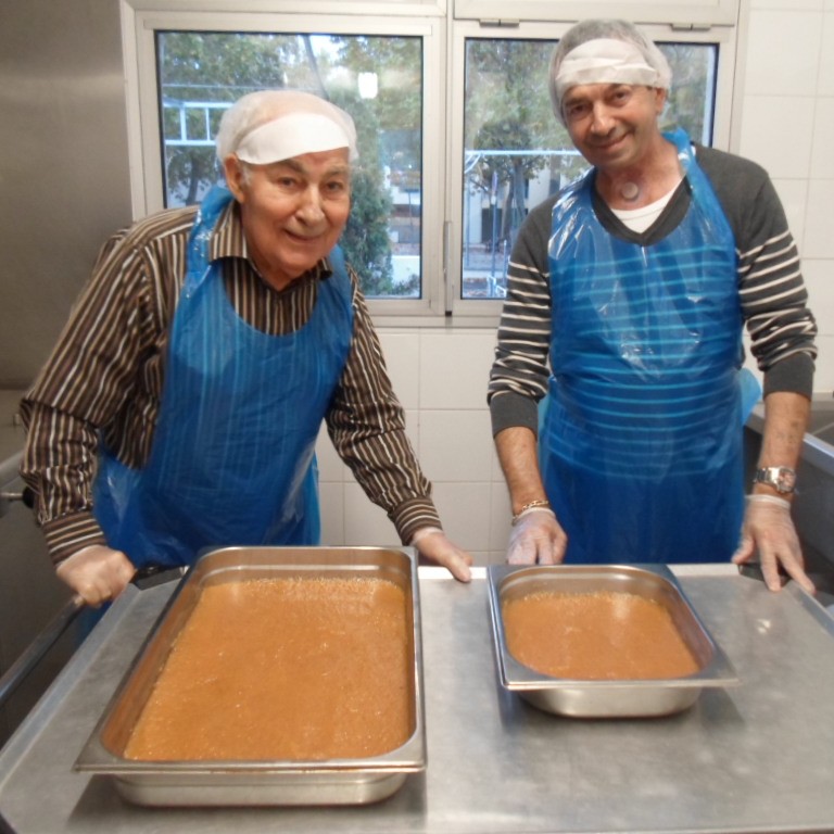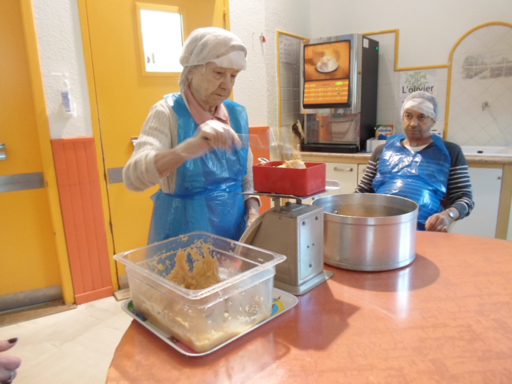 Voici nos gourmands en train de confectionner la pâte de coing selon la recette de monsieur Del Rey.