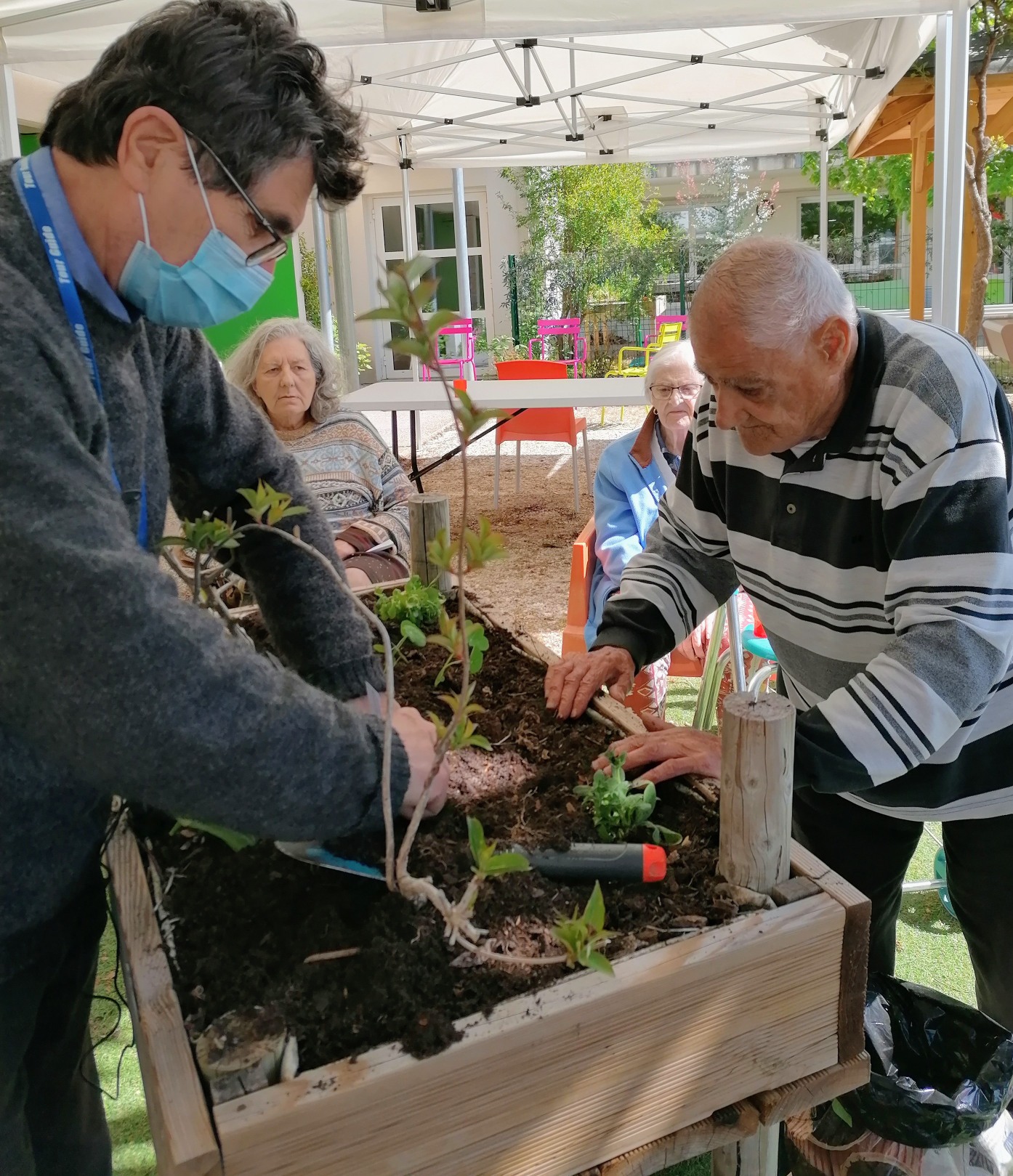 Jorge, un bénévole intervient tous les jeudis avec un atelier bavardages et débats sur tous sujets … les beaux jours arrivant, il propose aux résidents qui le souhaitent de finir l’après-midi en atelier jardinage. Voici les 1ères pointes vertes qui sortent … Un grand merci à Jorge pour sa gentillesse et sa générosité.