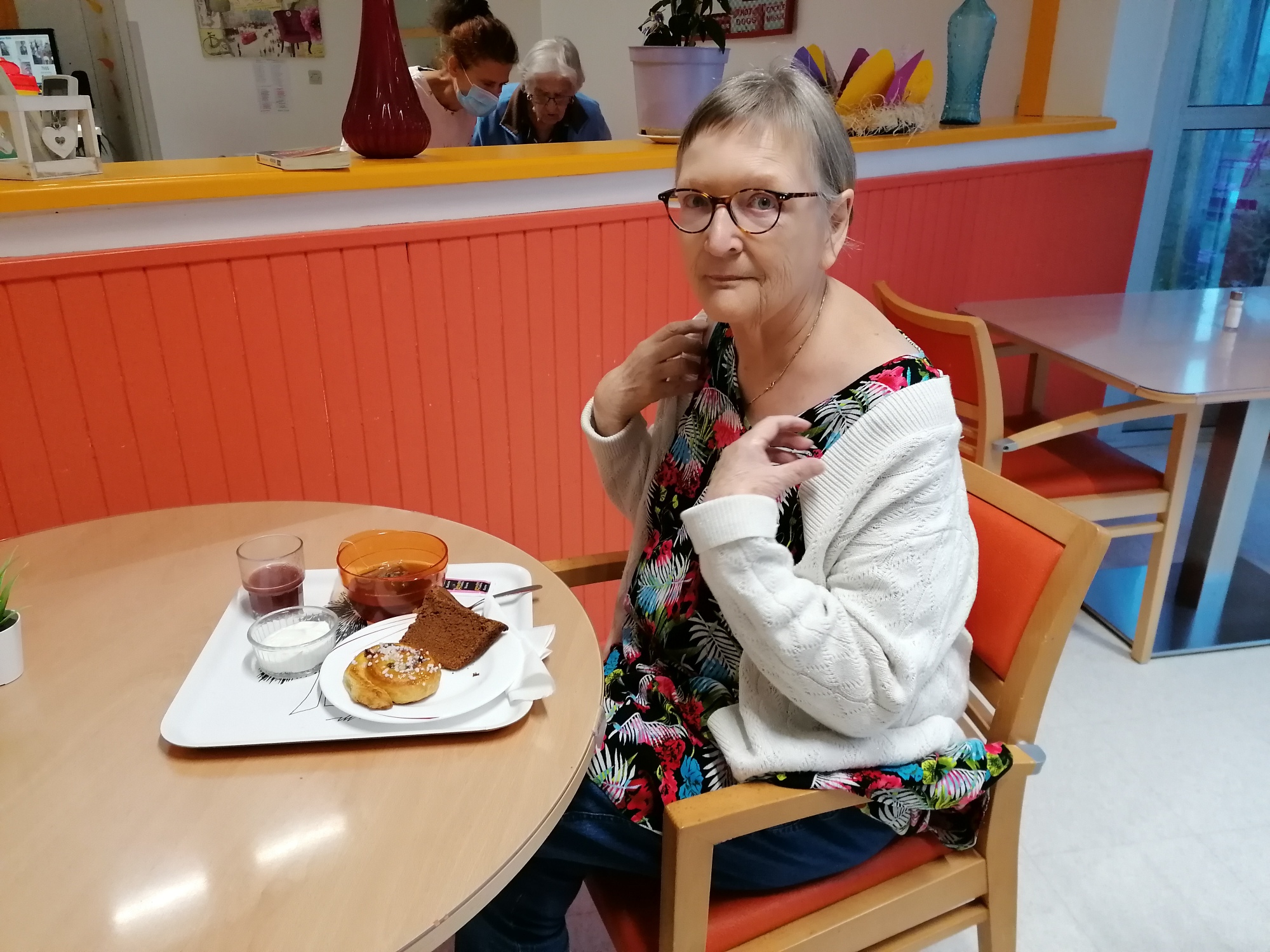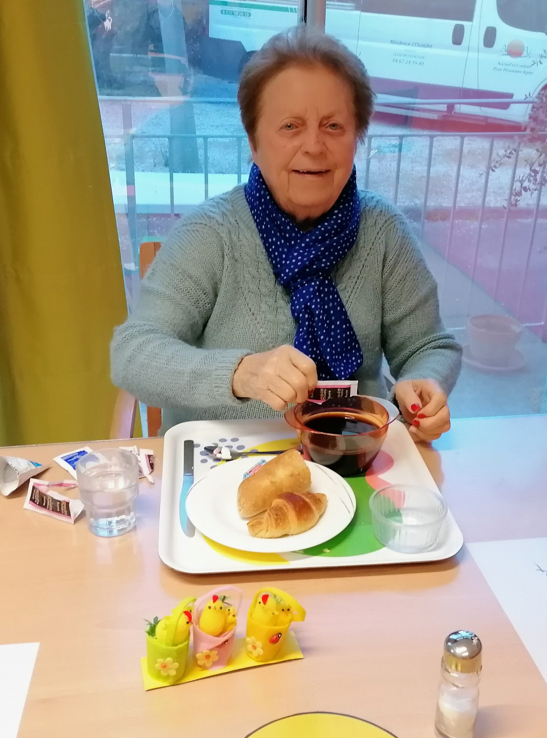 Une arrivée de printemps timide mais tout de même marquée par une proposition d’animation qui change du quotidien. Un buffet petit-déjeuner est présenté aux résidents et aux salariés dans tous les services et pour tous les goûts, du salé, du sucré, du frais et du fait maison. Tout ce beau monde profite bien de cet instant convivial et délicieux à en juger par les retours des convives ravis. Une agréable journée pointe son nez grâce à ce temps suspendu …