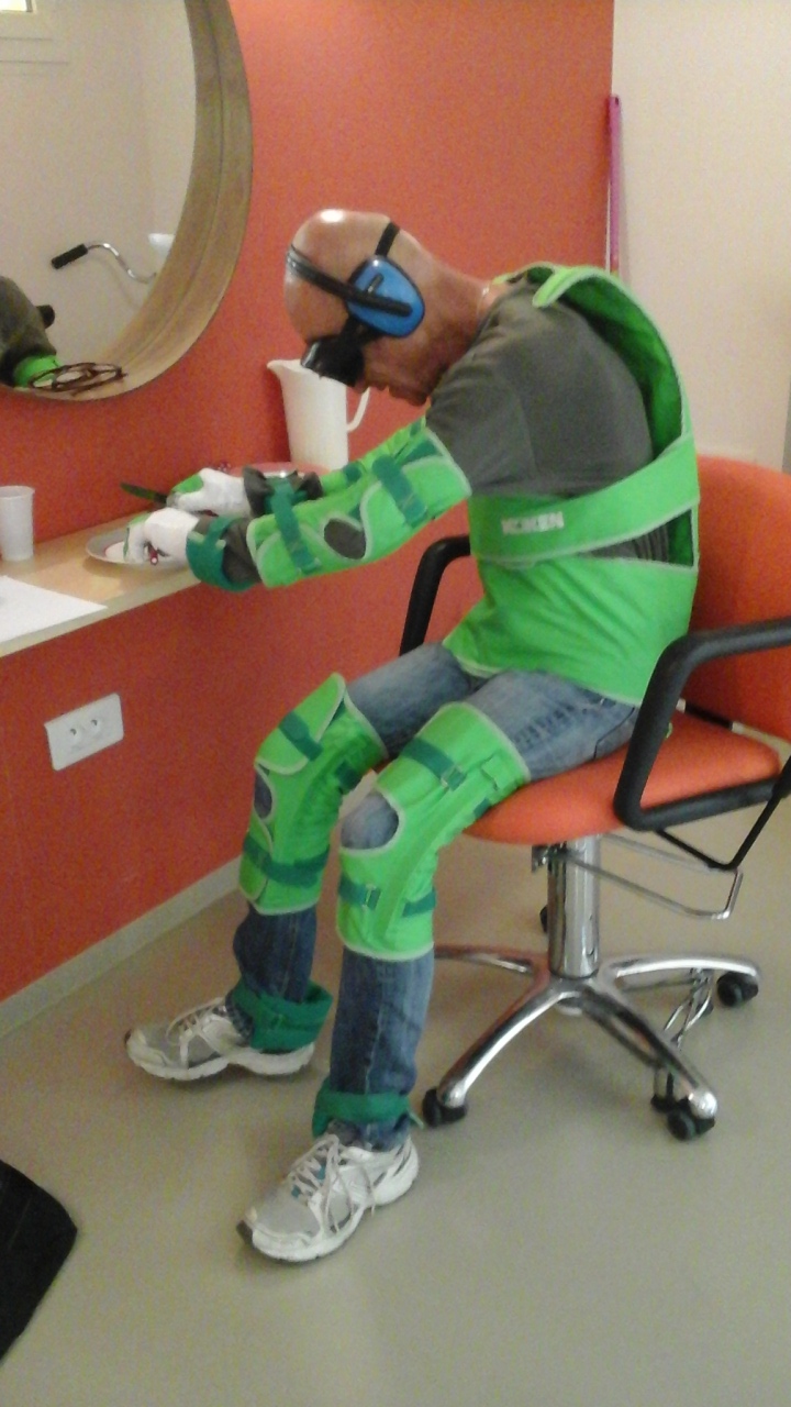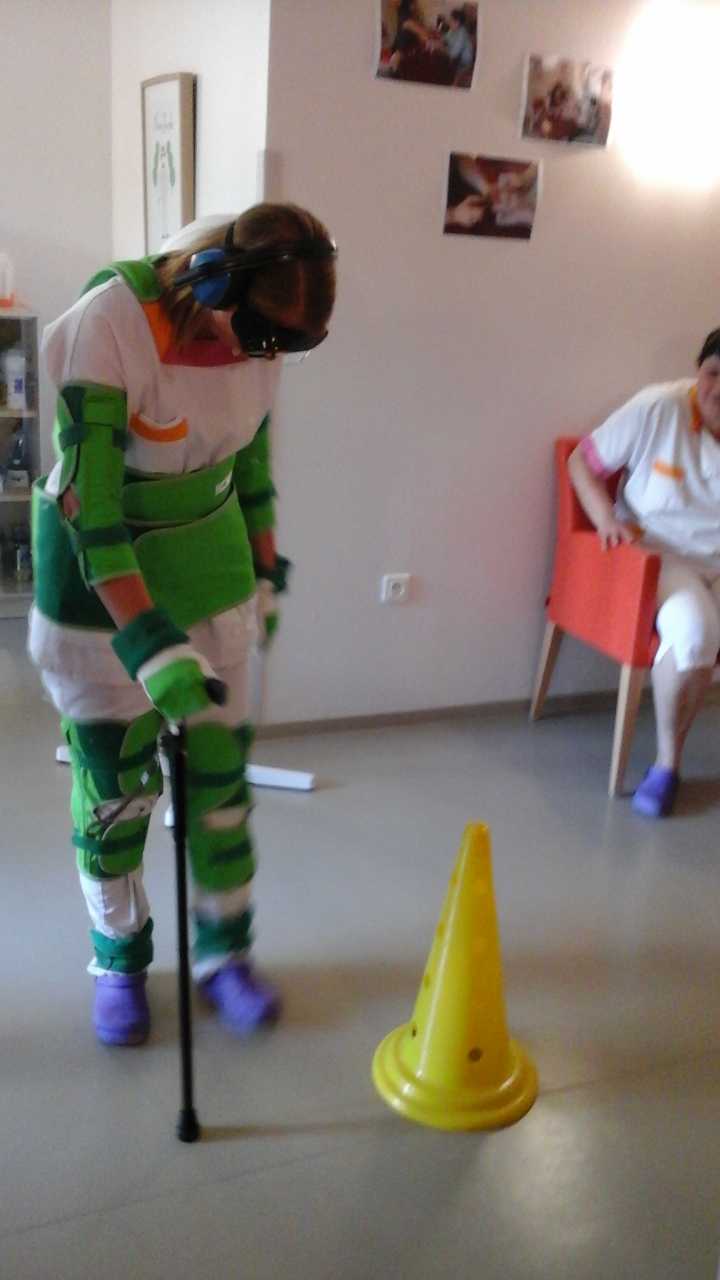 Les 19 et 20 mai 2016 toute l’équipe de l’Oustalet a pu se mettre dans la peau d’un résident ! Grâce aux prêts de 2 combinaisons de simulation du vieillissement par le CLIC l’EPI et l’ ADHAP 34, nous avons pu expérimenter les difficultés que peuvent rencontrer les personnes âgées (gène visuelle, troubles auditifs, raideurs, inconforts, mouvements réduits, arthrose…)