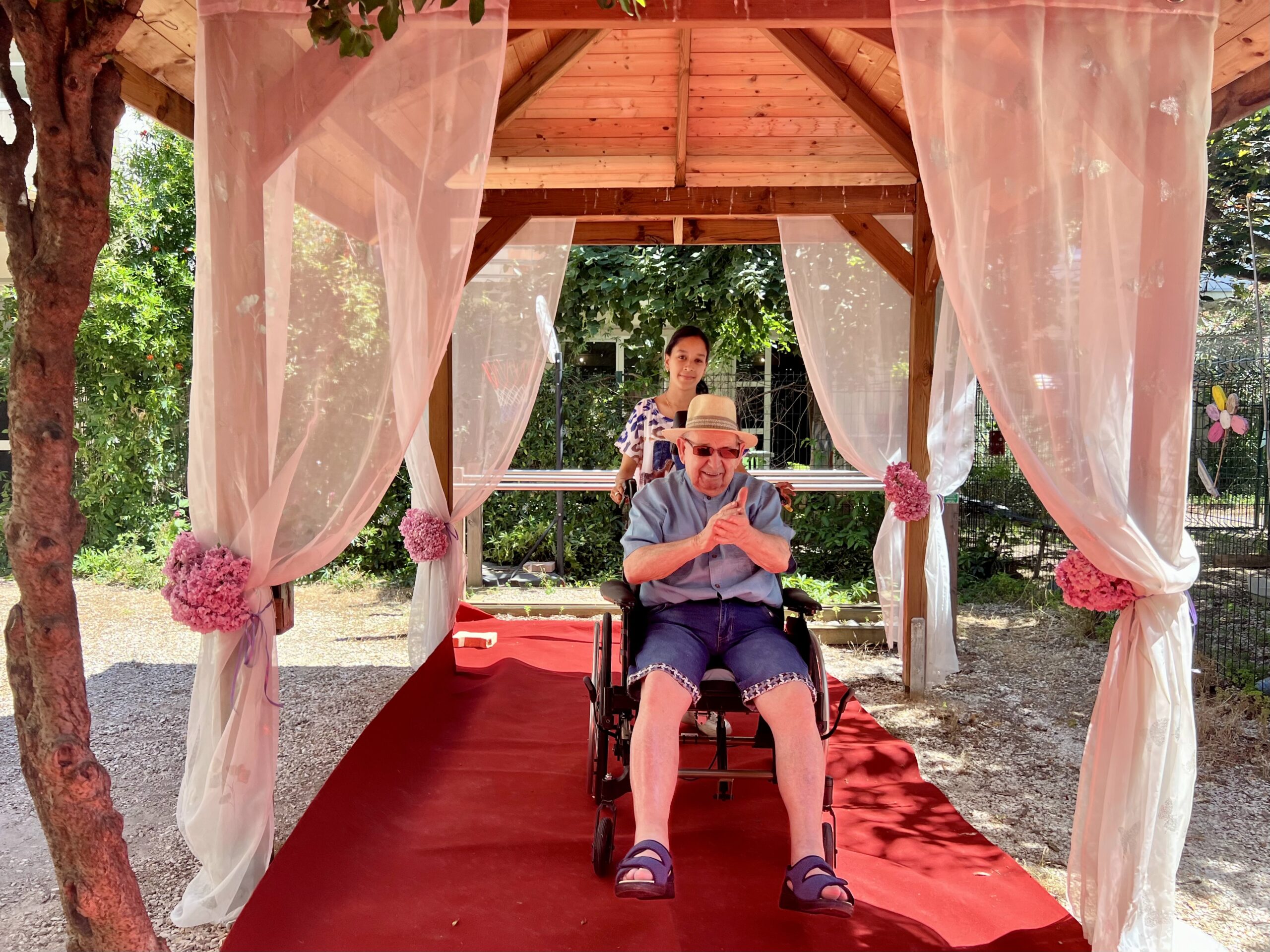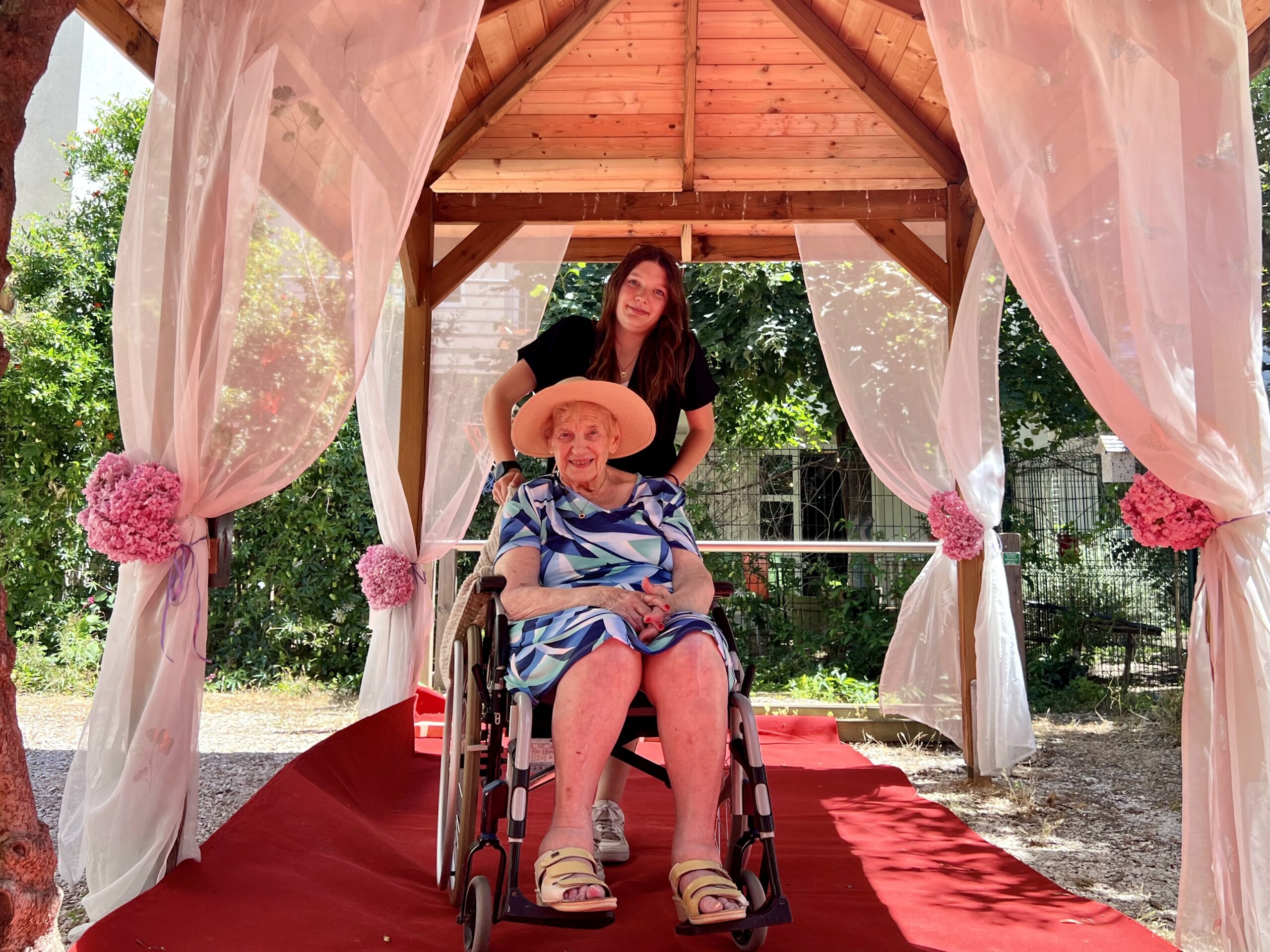 Beaucoup d’effervescence ce jeudi 15 juin dans le jardin, tout ce petit monde (résidents, lycéens et salariés) s’attèle aux préparatifs de décoration du jardin et la participation aux ateliers beauté proposés par les lycéens.