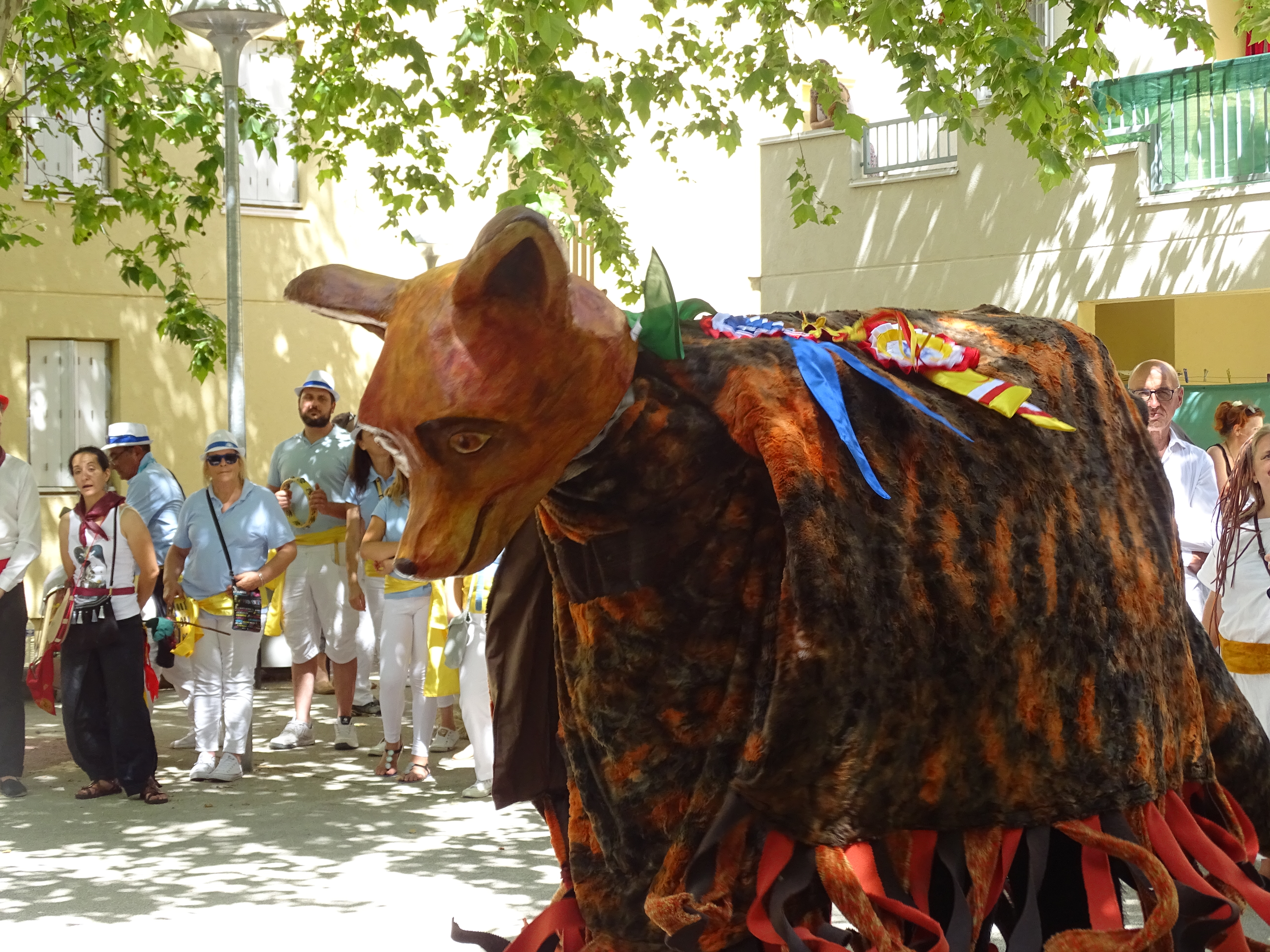 Pour l’occasion de nombreux animaux totémiques sont venus rejoindre les animaux totémiques des villages voisins.La Cabreta de Montagnac, Le Biou de Portiragne, Le Lion d’Aumes, La Cèbe de Lézignan la Cèbe, Le Bouc de Paulhan, La Renarde de Fontès. Ensemble ils ont défilé jusqu’à l’EHPAD de l’Oustalet. Sous le regard attentif et impressionné de ces derniers, chaque animal à dansé.