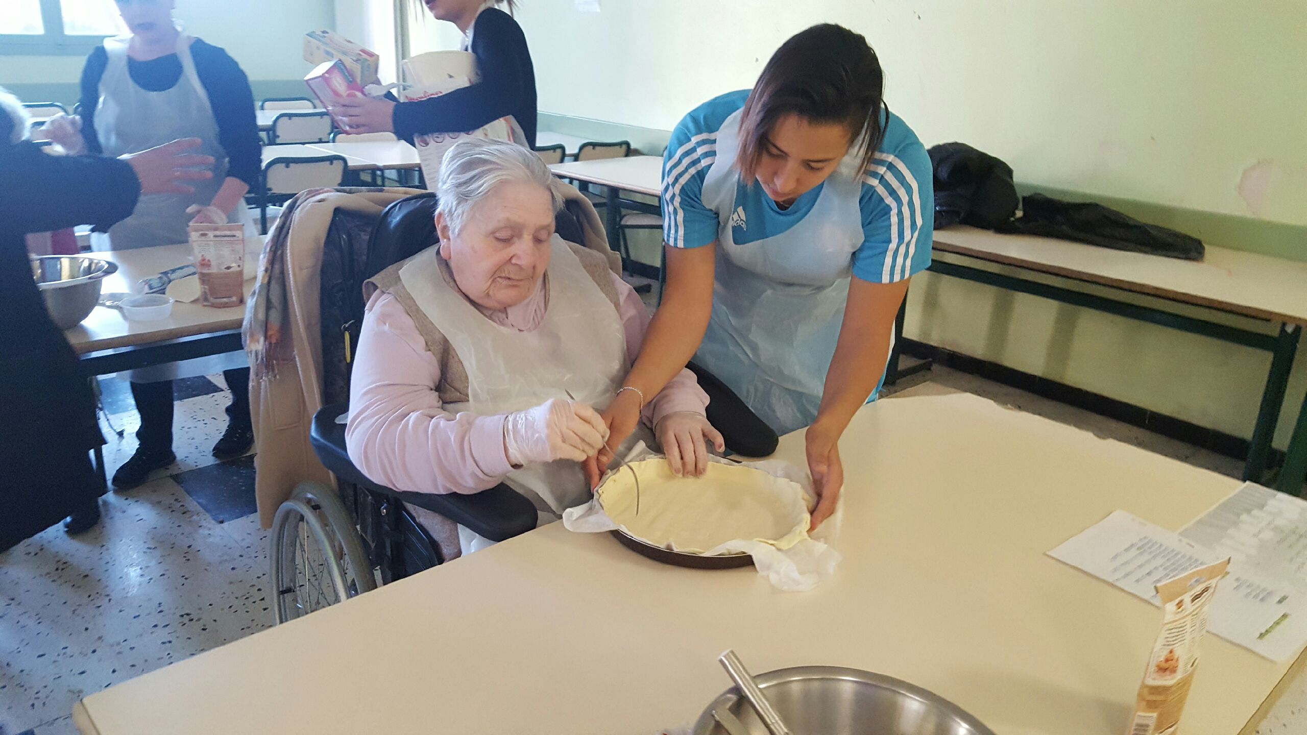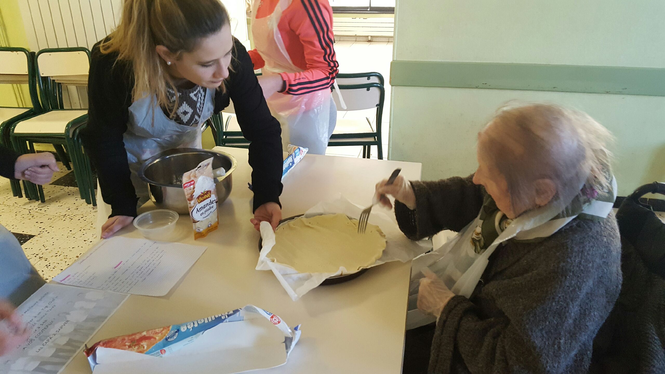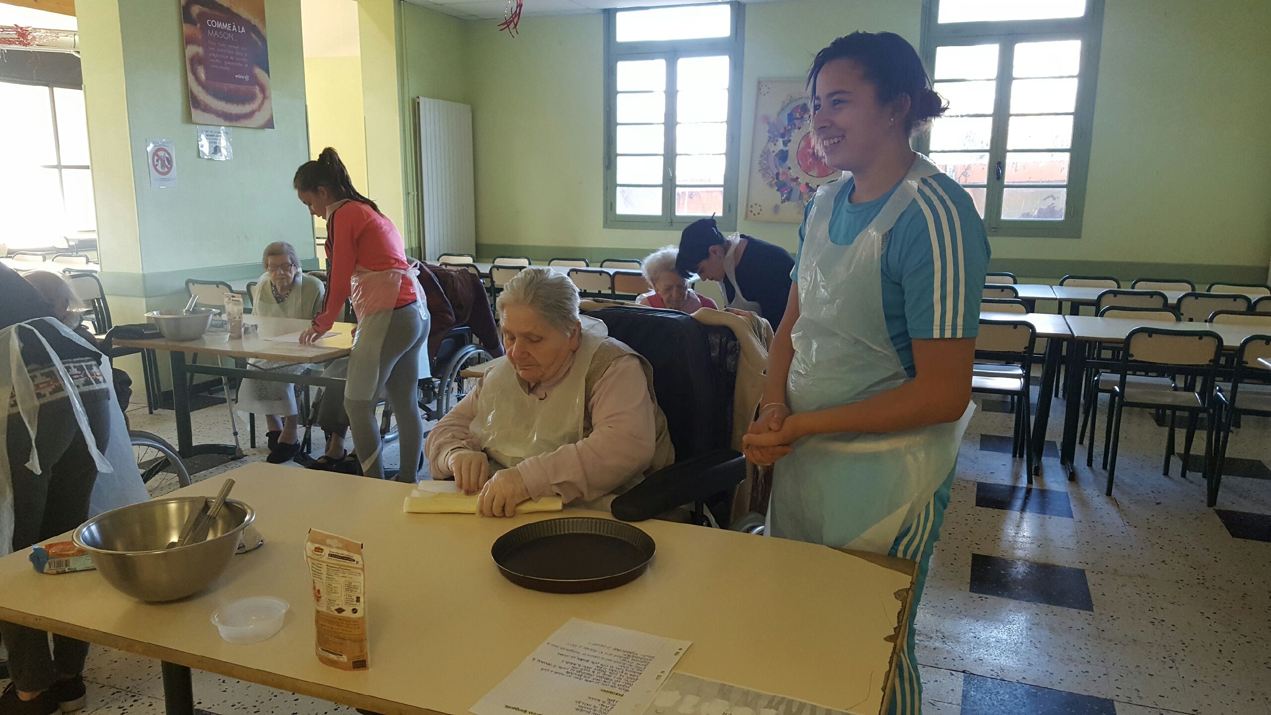 Les mamies grimpent dans le mini-bus et nous voilà partis pour une aventure culinaire : l’atelier cuisine en compagnie de lycéennes.