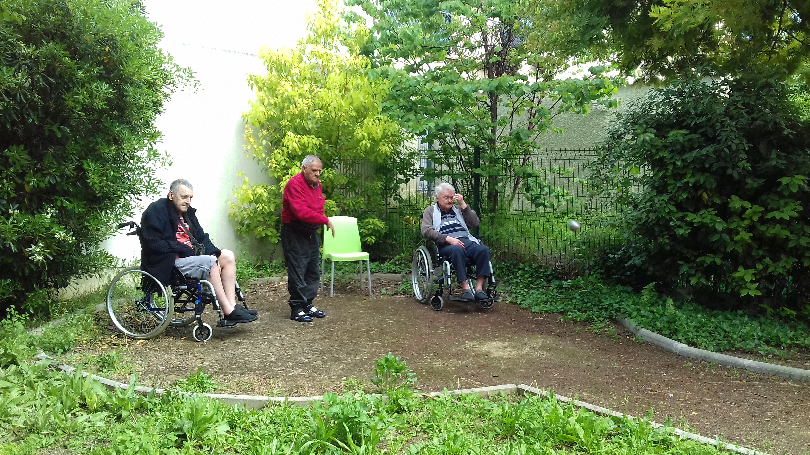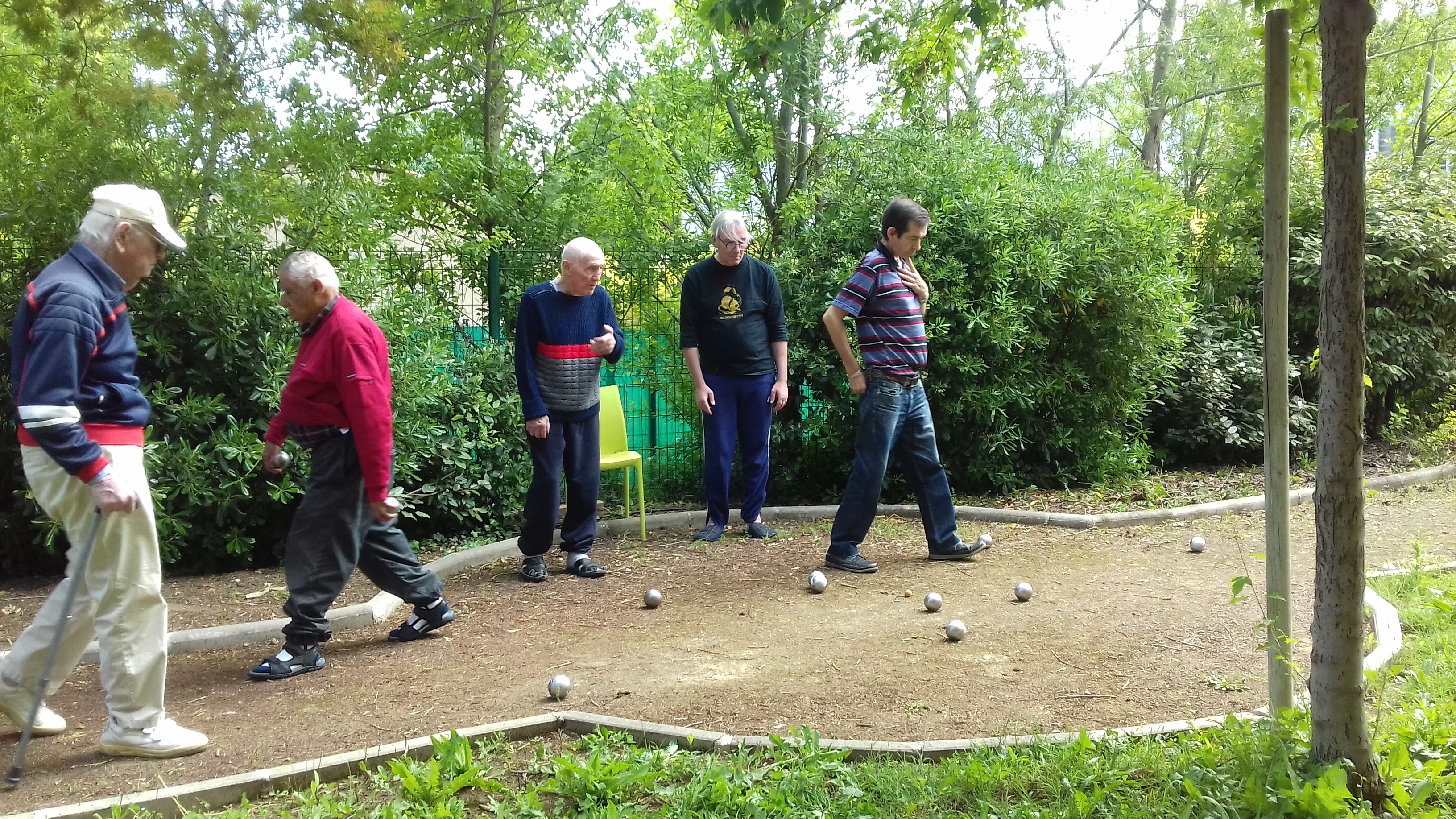 Le soleil joue son Arlésienne et la pluie s’éternise sans que nous l’ayons invité. Dès que le soleil gagne la partie contre la pluie, les résidents en profitent pour sortir jouer à la pétanque.