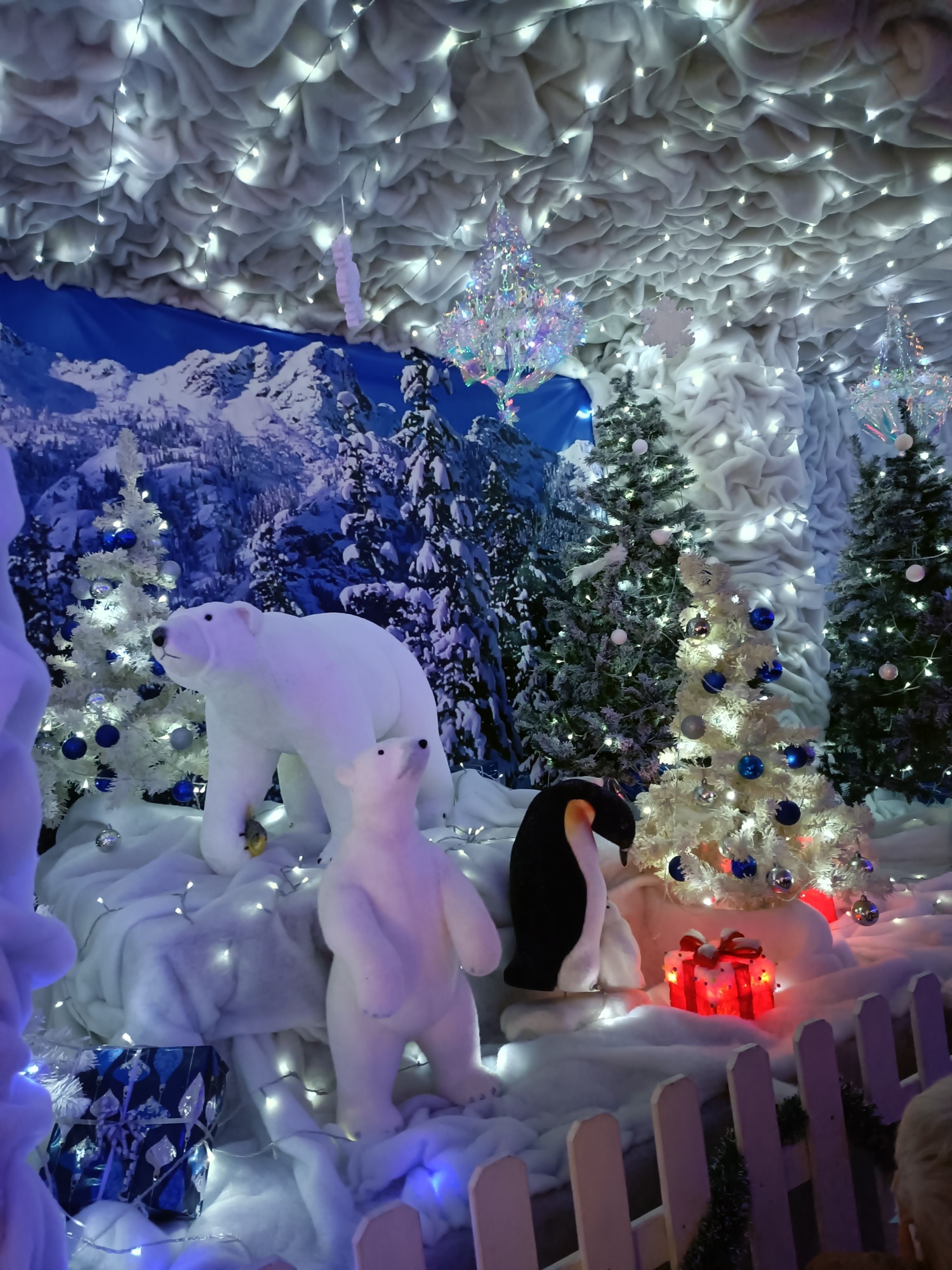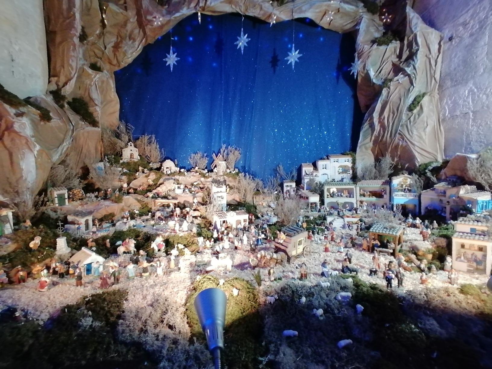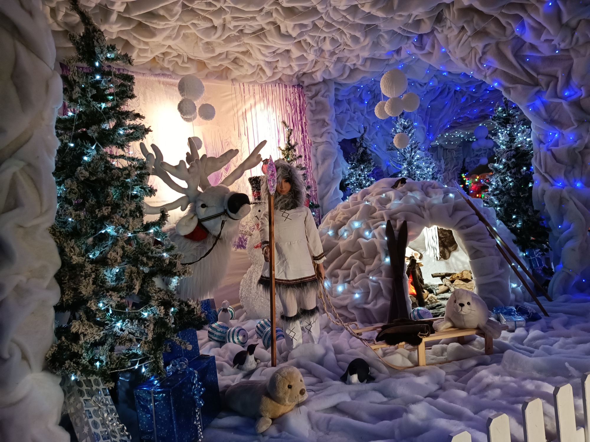 L’ambiance de Noël est toujours présente grâce à la décoration encore en place, sapins et chalets agrémentent le parvis de la chapelle. Nous pénétrons dans le 1er espace à visiter, la chapelle des Pénitents qui se transforme chaque année (la décoration nécessite 4 mois de préparation). On suit un parcours qui représente un mini village avec des santons grandeur nature et des thématiques différentes chaque année. Les métiers d’autrefois, le marché, la garrigue, le campement des Gitans, la place du village, les champs d’oliviers, les vignes, les lavandières, les bergers et leurs troupeaux. Sans oublier l’impressionnante plus grande crèche grandeur nature de France. Puis nous terminons notre visite par le 2ème espace qui se trouve à 2 pas de la chapelle. Ce dernier est consacré au monde enchanté de Noël avec ses décors magnifiques de banquise, pôle nord pour enfin arriver devant la maison de père Noël et son atelier où les lutins fabriquent les jouets. C’est une mise en scène féérique que nous offrent chaque année les bénévoles de cette association, bravo à tous et merci pour la beauté des créations.