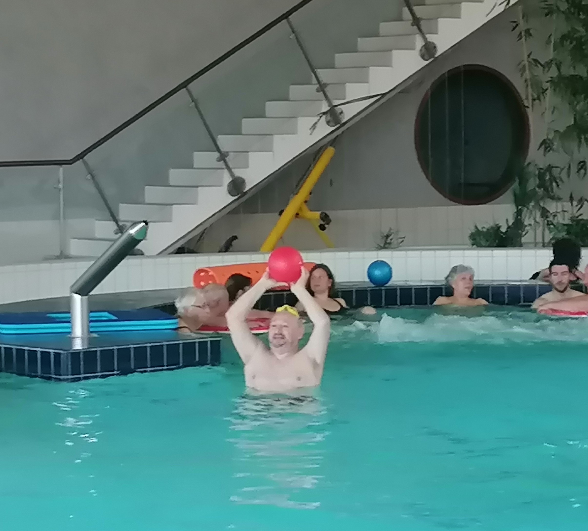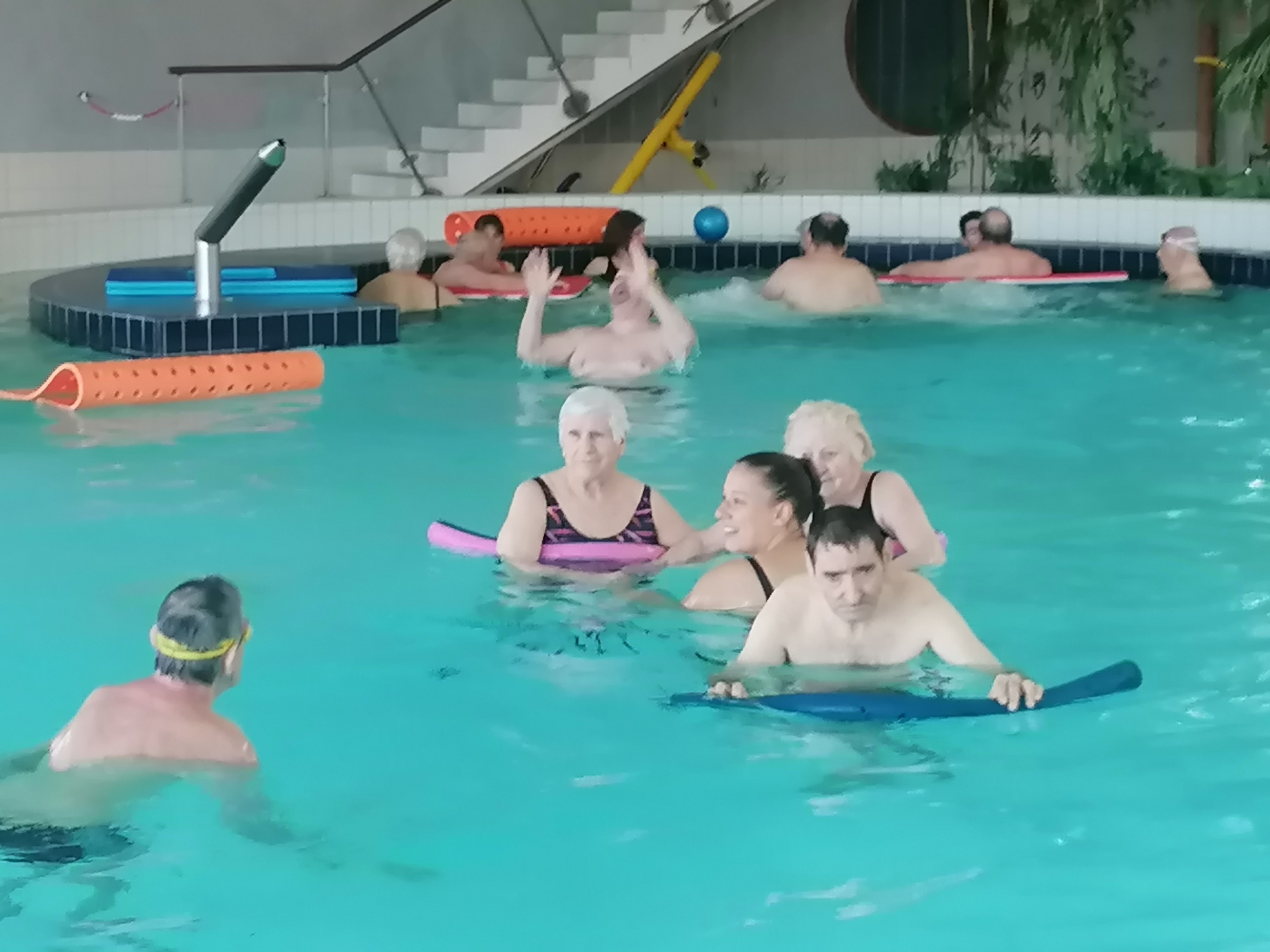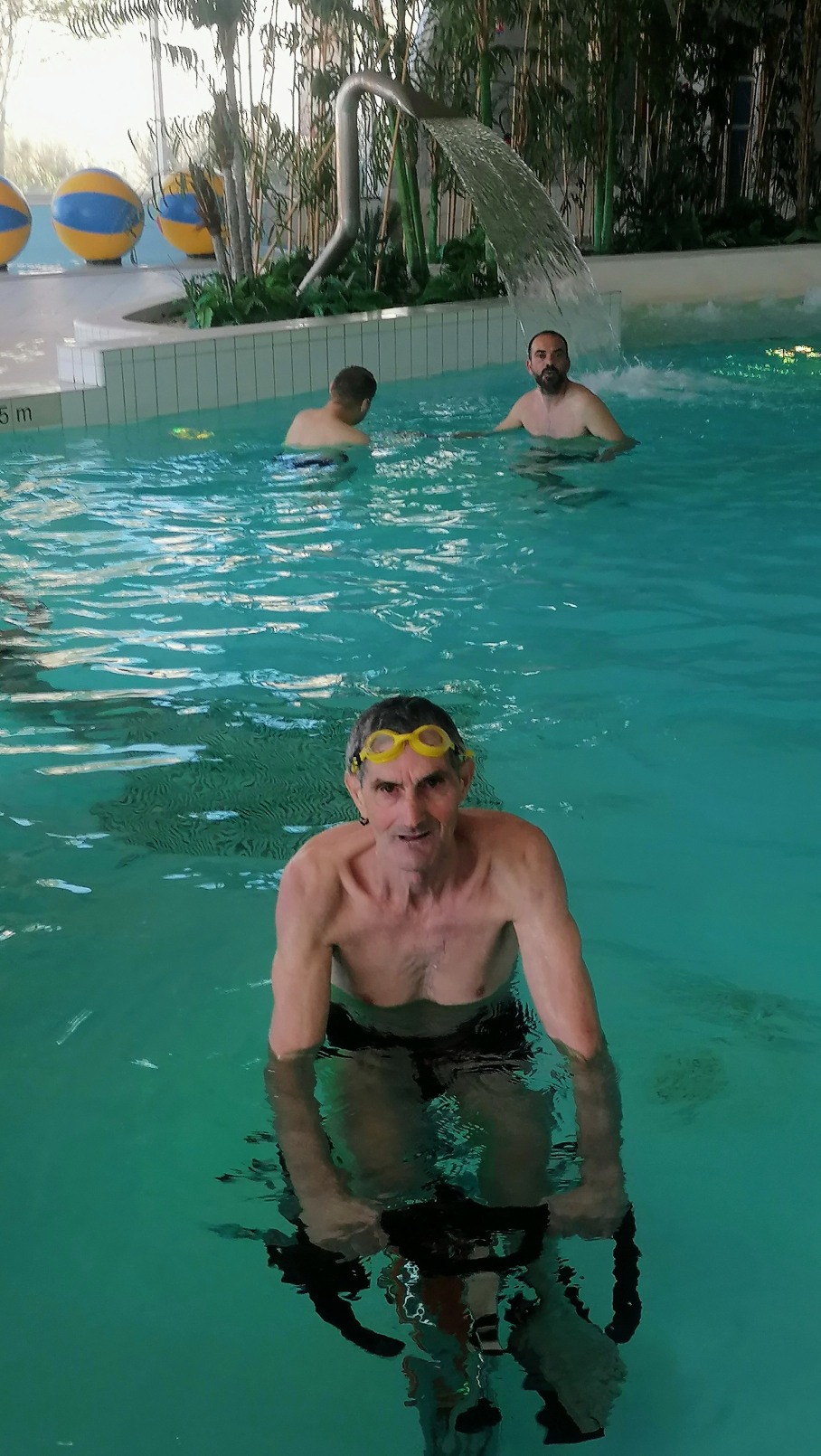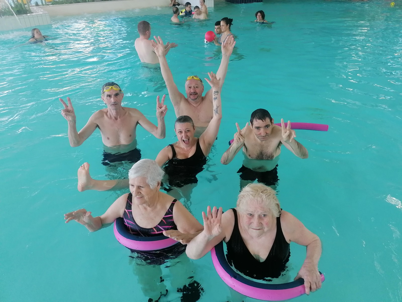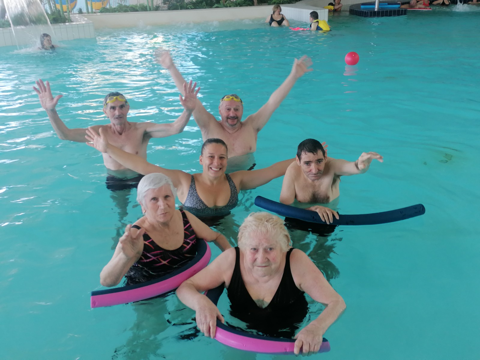 Les 1ers pas dans l’eau sont timides, mais hâtivement les nageurs aguerris s’élancent dans l’eau, tandis que d’autres préfèrent se cramponner à leur frite pour appréhender doucement un élément quelquefois oublié. Puis rapidement les rires et les éclats de voix se font entendre, on se mêle à des petits groupes de résidents d’EHPAD ou de MAS (Maison d’Accueil Spécialisé) qui jouent au water-polo avec enthousiasme accompagné par les soignants.